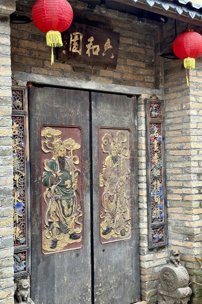 四合院內(nèi)有一條“門庭耀史”的古巷,巷里安放了近30個來自不同朝代的門面,家家戶戶門前都掛著楹聯(lián)橫額“名畫要如詩句讀,古琴兼作水聲聽”“富貴花開書錦堂,福祥竹發(fā)親仁里”,仿佛推門而進(jìn),就能穿越時空回到那個年代。