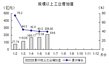 上半年,全市規(guī)上工業(yè)累計(jì)完成增加值209.80億元,同比增長(zhǎng)39.5%,兩年平均增長(zhǎng)27.5%,平均增速比一季度提升2.3個(gè)百分點(diǎn)。