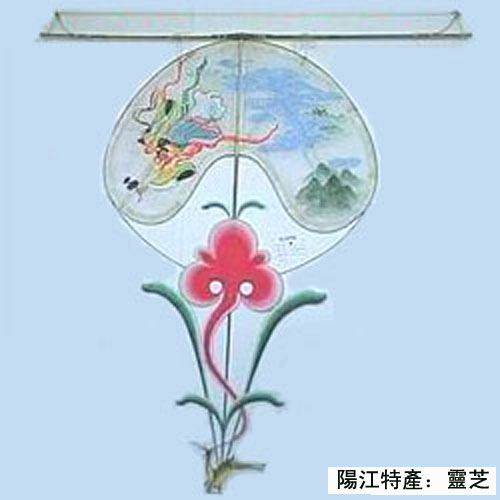 陽江扎制的風箏,種類繁多,有龍類、板子類、軟翅類、硬翅類、筒子類、串類、復線操作類等,不但放飛效果良好,而且形神兼?zhèn)洌哂袠O高的實用價值、欣賞價值和收藏價值。 “靈芝”風箏被評為世界十絕,“百足”風箏長可達100多米。陽江現已在鴛鴦湖公園內建有風箏陳列館。