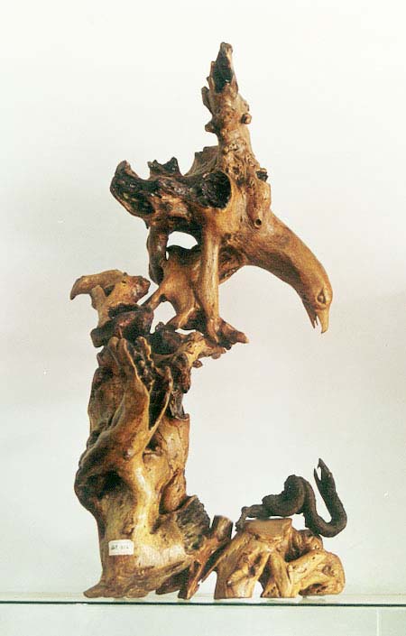 在眾多的根雕雅石之中,最為奇異的是孔雀石和根書。孔雀石現(xiàn)已被定為陽春市市石,并成為省石候選對象。而根書,被譽為"天書",取自天然樹根酷仿草書而成,集書藝、根藝于一體。根藝作品被同行稱為"廣東根藝大戶",根書作品譽為"中華一絕"。根書專題片參加全國22省市以及日本、美國合辦的《華夏一奇》電視展覽,轟動國內(nèi)外。88年以來,先后組織參加國內(nèi)外大、中、小型展覽40多次,獲獎423個,其中縣級172個,市級28個,省級82個,國家級85個,國際級56個,國際特別金獎一個,金牌總數(shù)53個。四海賓朋慕名而來,贊不絕口,嘆為觀止。