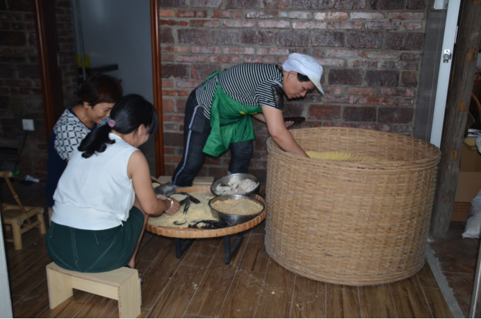 起焙裝缸,烘焙好的粉酥要及時起焙,將粉酥從烘爐中收起放到米缸中,此時要掌握好火候,火候太老會烘焦。隨爐讓炭火熄滅后再出爐,口味會更好,更具傳統(tǒng)風味。