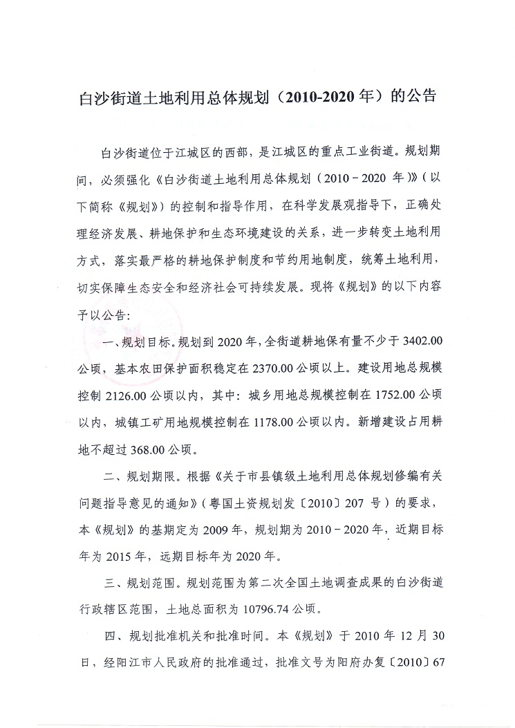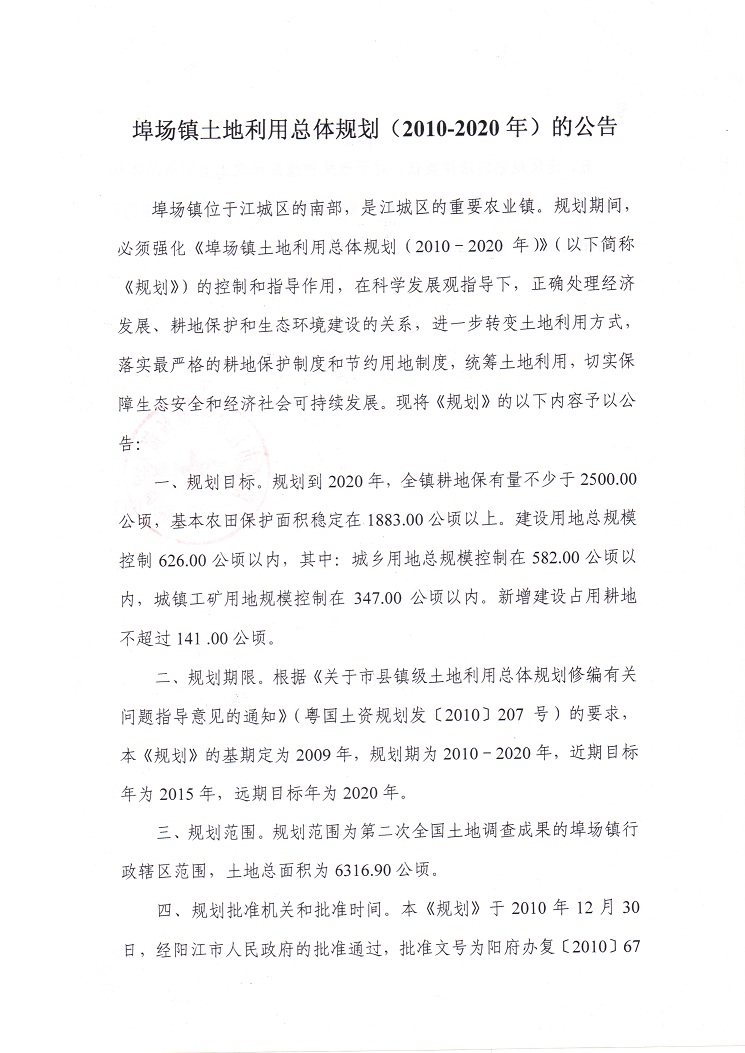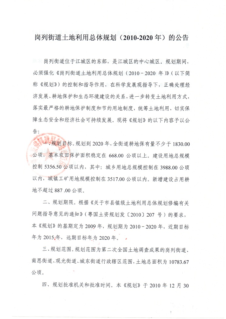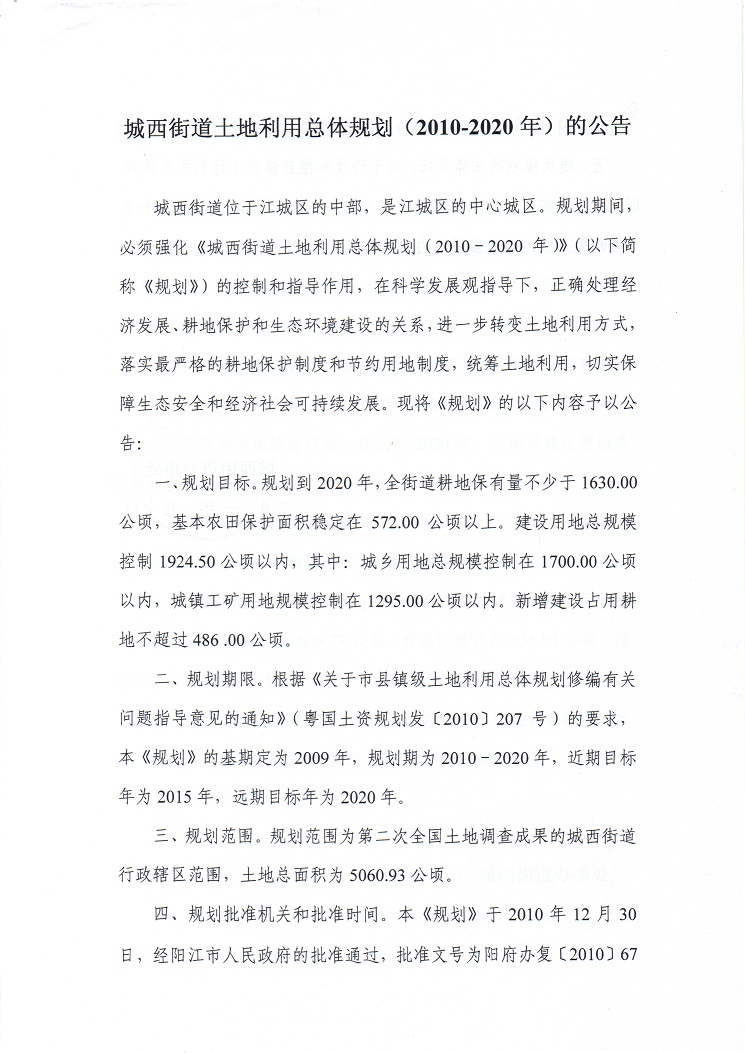 《江城區(qū)5 個(gè)鎮(zhèn)街土地利用總體規(guī)劃(2010-2020年)》成果公告