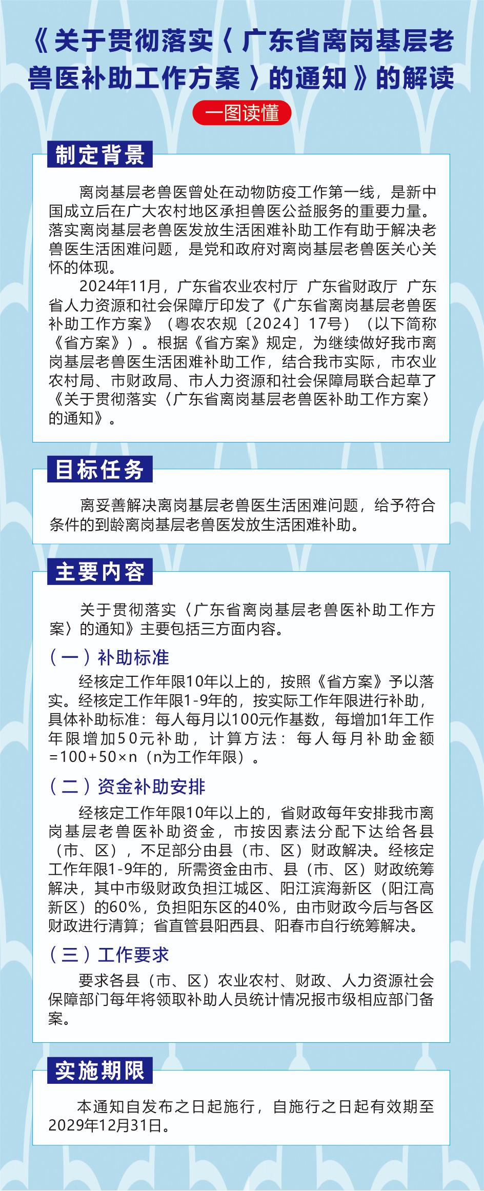 一圖讀懂《關(guān)于貫徹落實(shí)<廣東省離崗基層老獸醫(yī)補(bǔ)助工作方案>的通知》