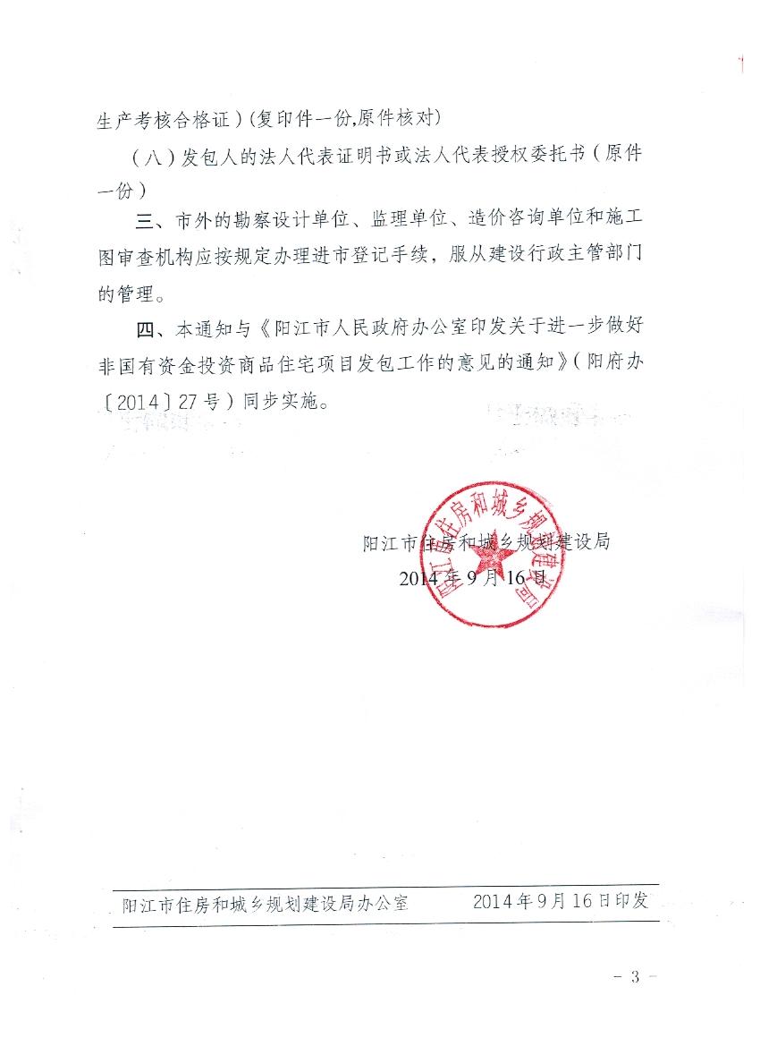 關(guān)于做好非國有資金投資商品住宅項(xiàng)目發(fā)包工作的通知(陽住建【2014】31號(hào))