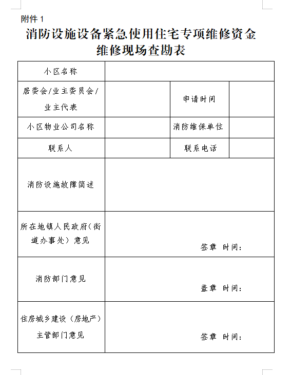 附件:1.消防設施設備緊急使用住宅專項維修資金維修現(xiàn)場查勘表