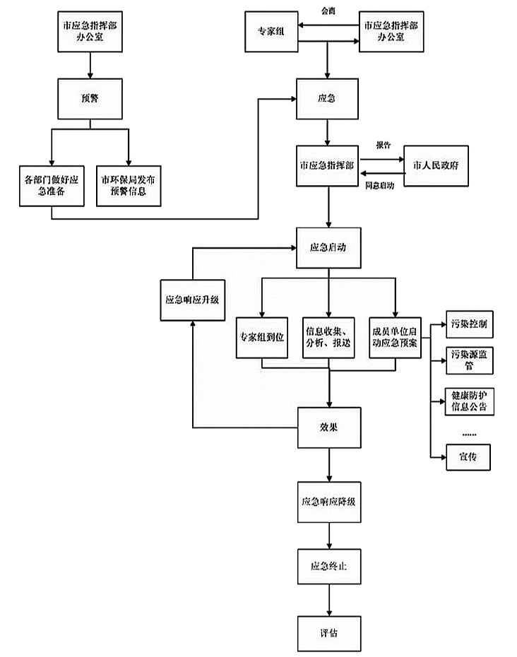 市應(yīng)急指揮部下設(shè)辦公室和專家咨詢組。辦公室設(shè)在市環(huán)境保護局,由市環(huán)境保護局、市氣象局、市應(yīng)急辦和市府辦公室組成。專家咨詢組由大氣污染防治、環(huán)境監(jiān)測、氣象、衛(wèi)生健康等方面專家組成。